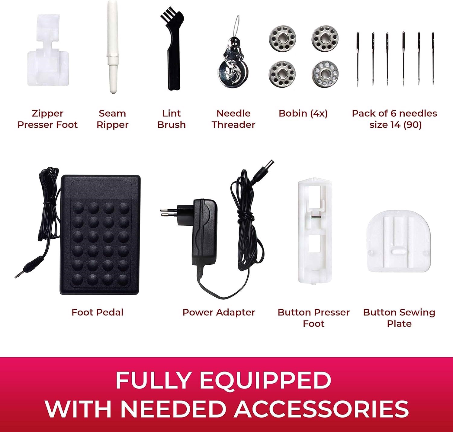 Reference link model # SM-1001 Mueller Machine For Sewing,110 Stitch Applications, Foot Pedal, LED Light, Buttonhole, Button & Zipper Sewing, User friendly, Thread Cutter and Removable Accessories Storage