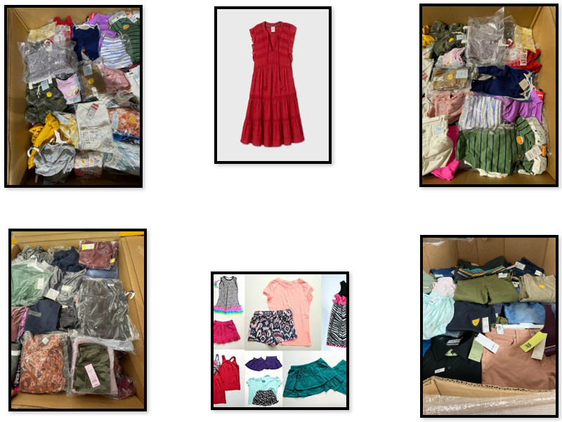 Overstock Merchandise. A nice assortment of clothing for men, women, and children. All with tags. Mixed sizes. Winter clothing is available upon request.