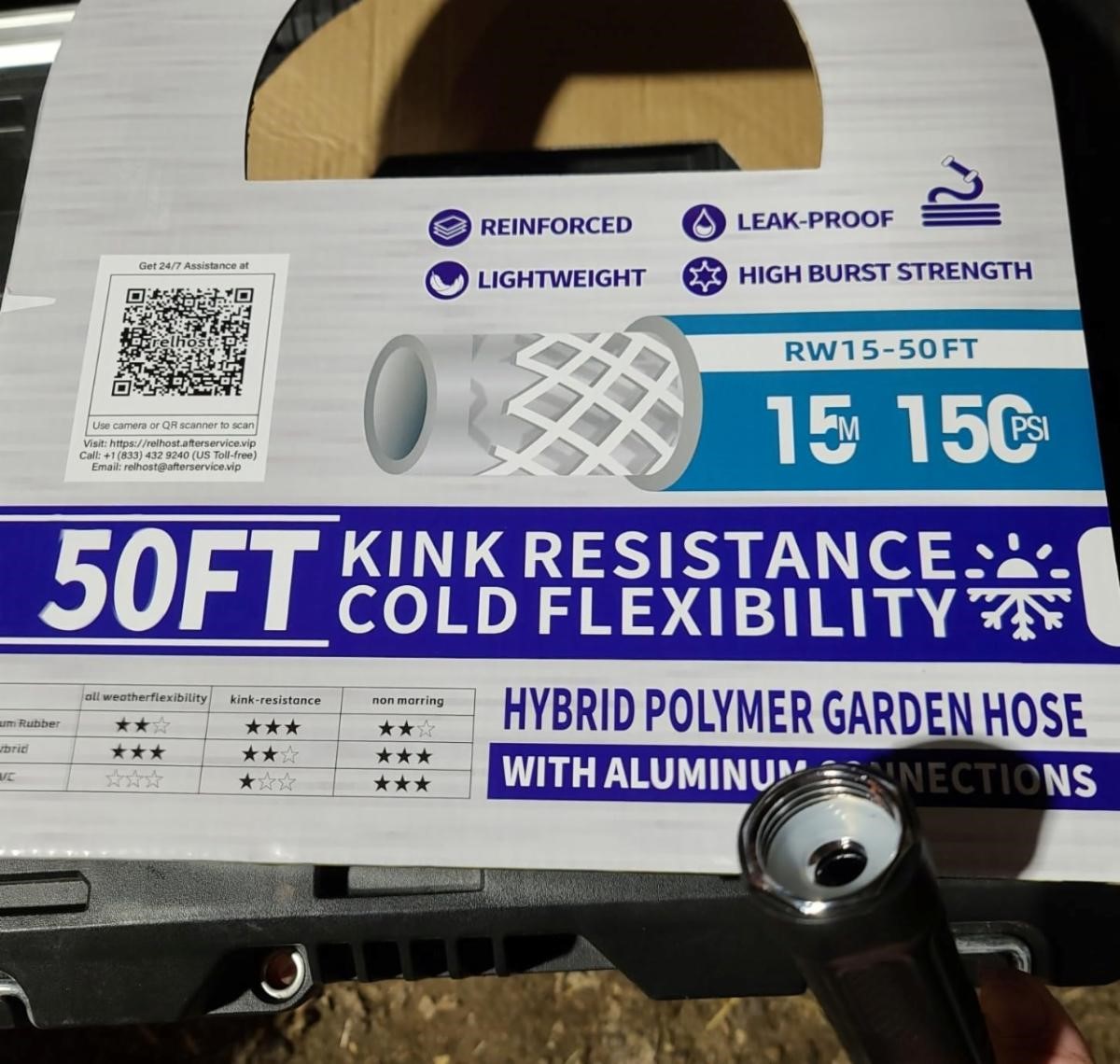 Relhost  50 ft, 5/8" Garden Hose with 360º Swivel Handle USA