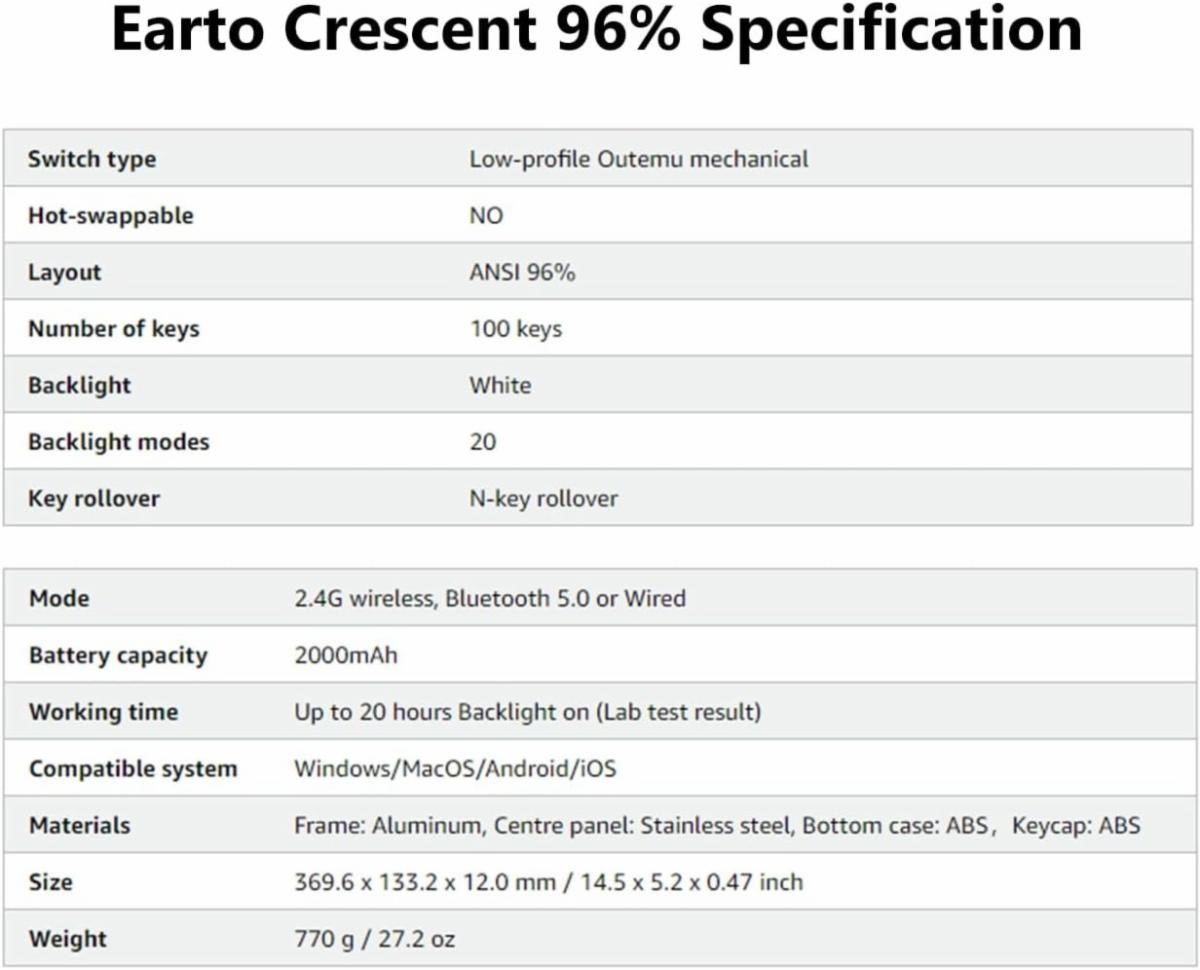 Earto CT100 Wireless Mechanical Keyboard USA