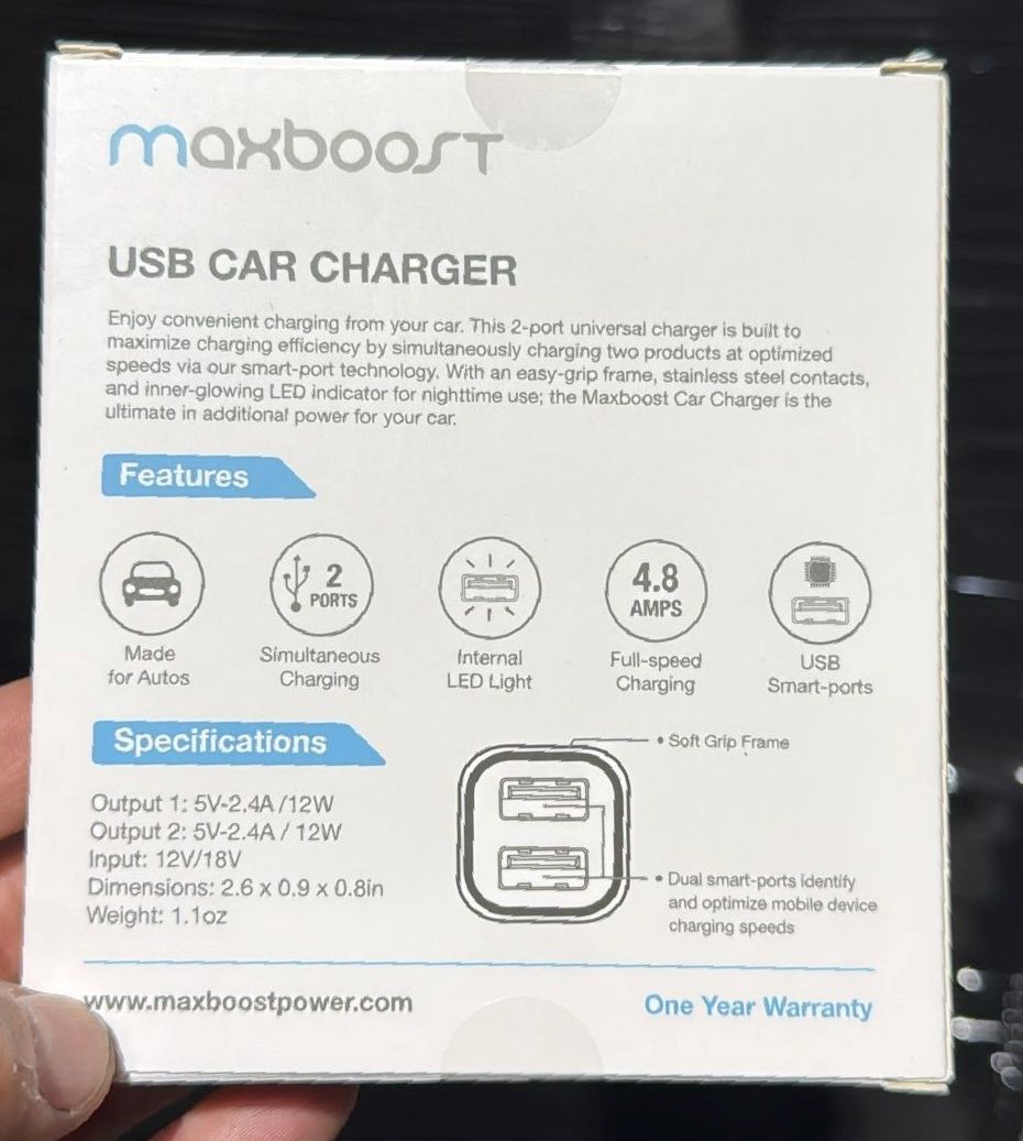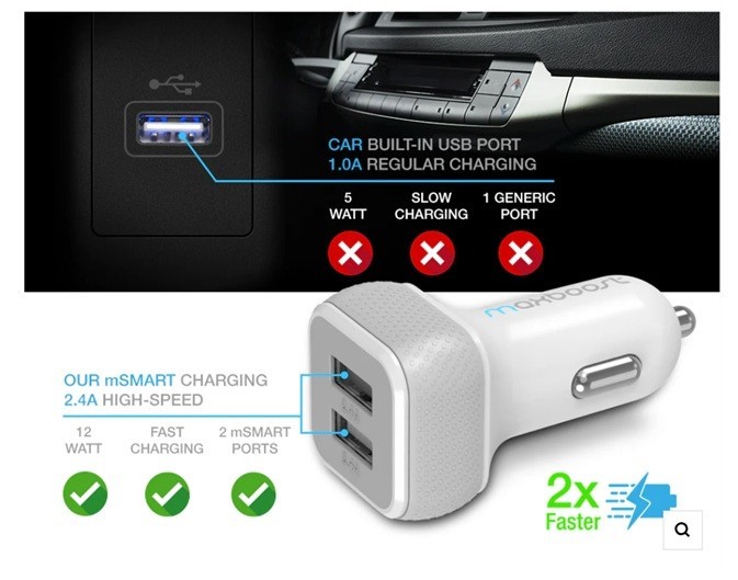 MAXBOOST Dual-Port USB Car Charger USA
