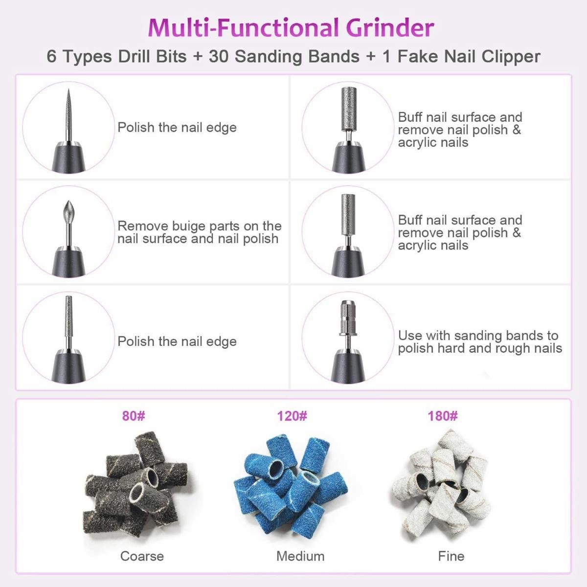 Portable E Filer for Acrylic Gel Nails, Shaping, Polishing, Filing