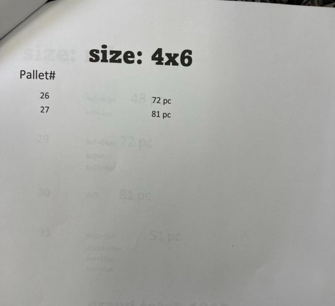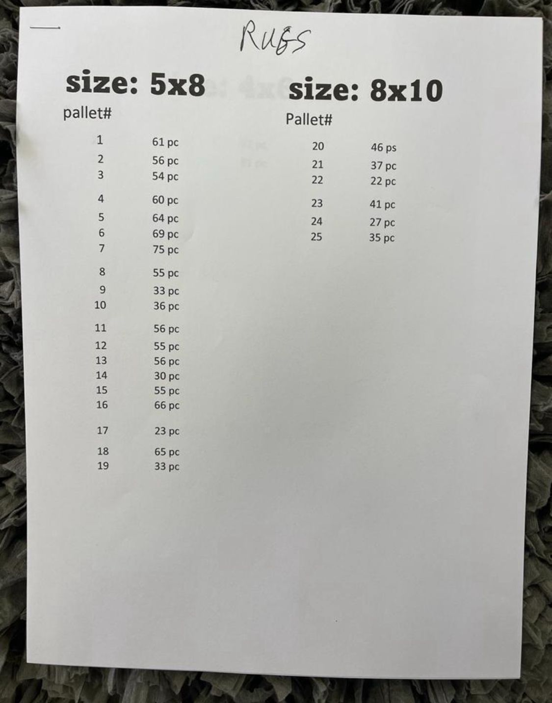 Carpets sizes breakdown
