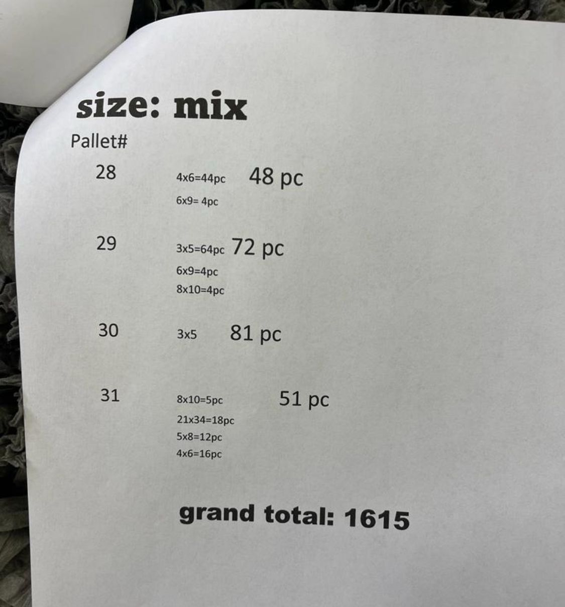 Total: 1 615 pcs. / 35 pallets